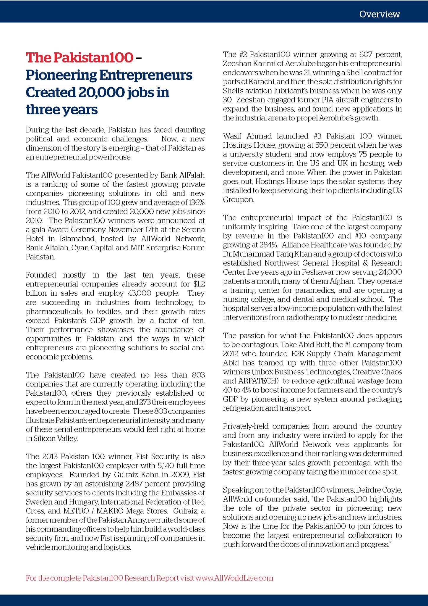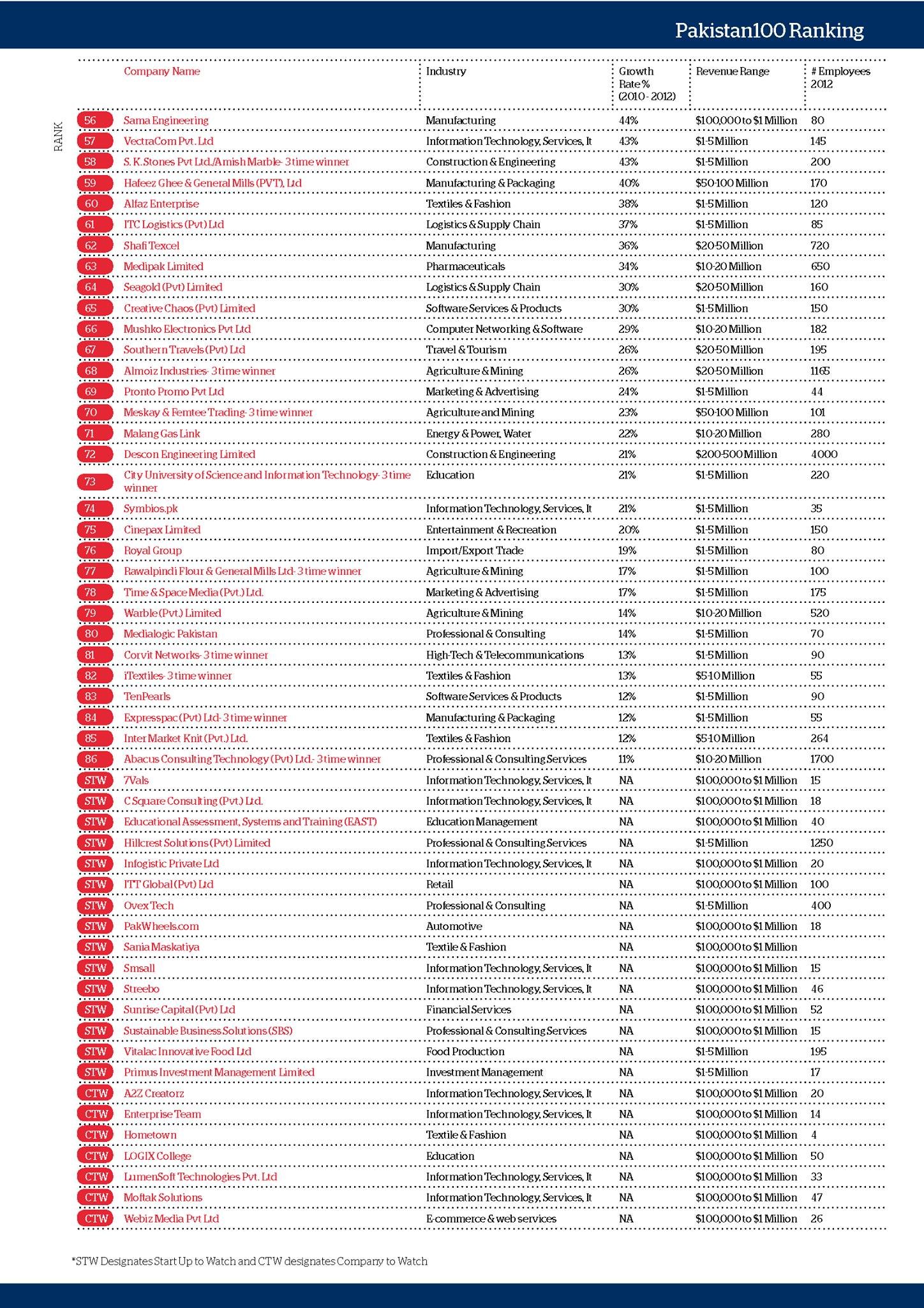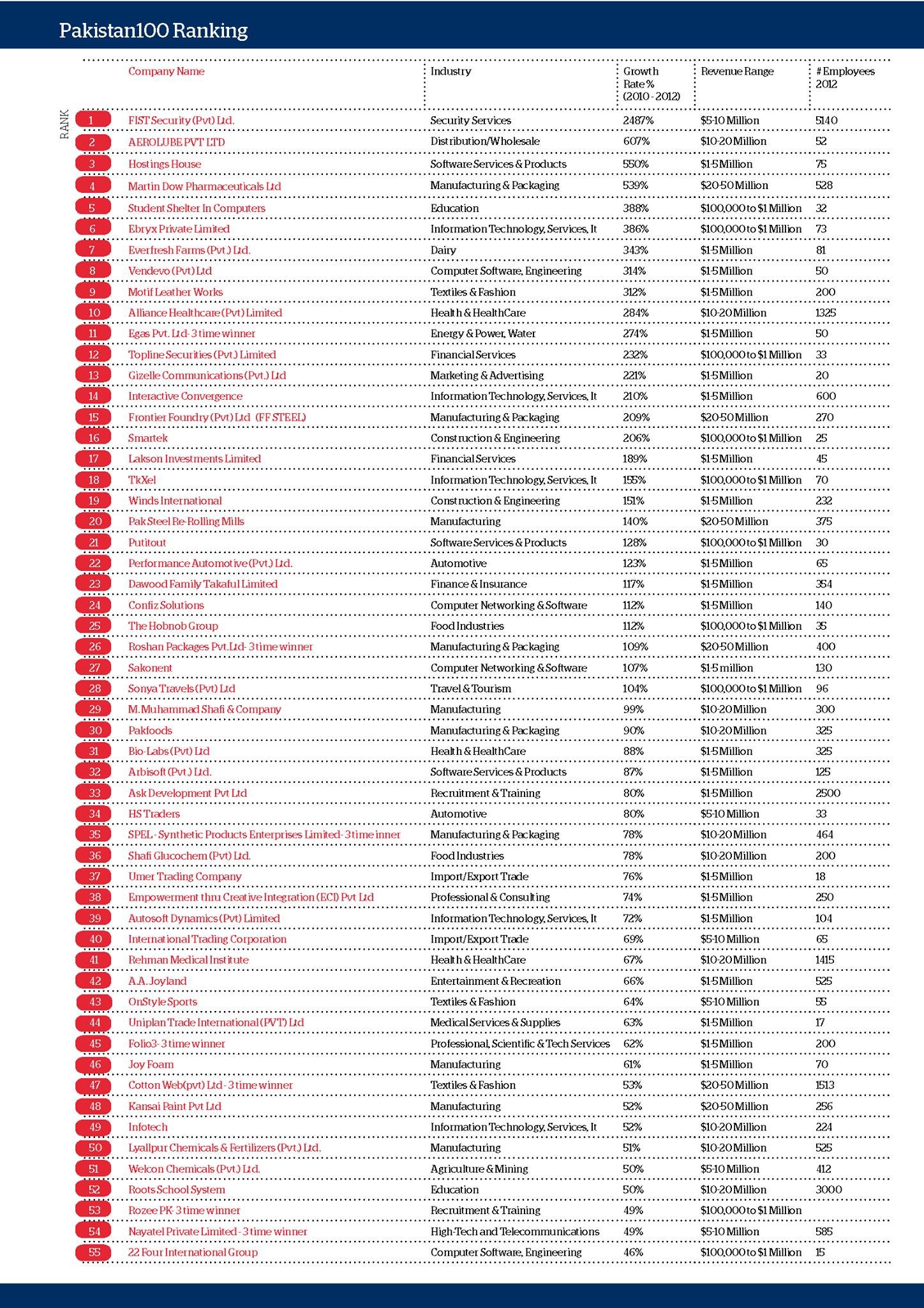 PAKISTAN TOP 100 FAST GROWTH COMPANIES AWARDS – 2013